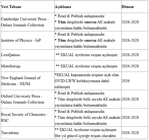 EKUAL İçeriklerine Eklenen Yeni Veri Tabanları Hakkında
